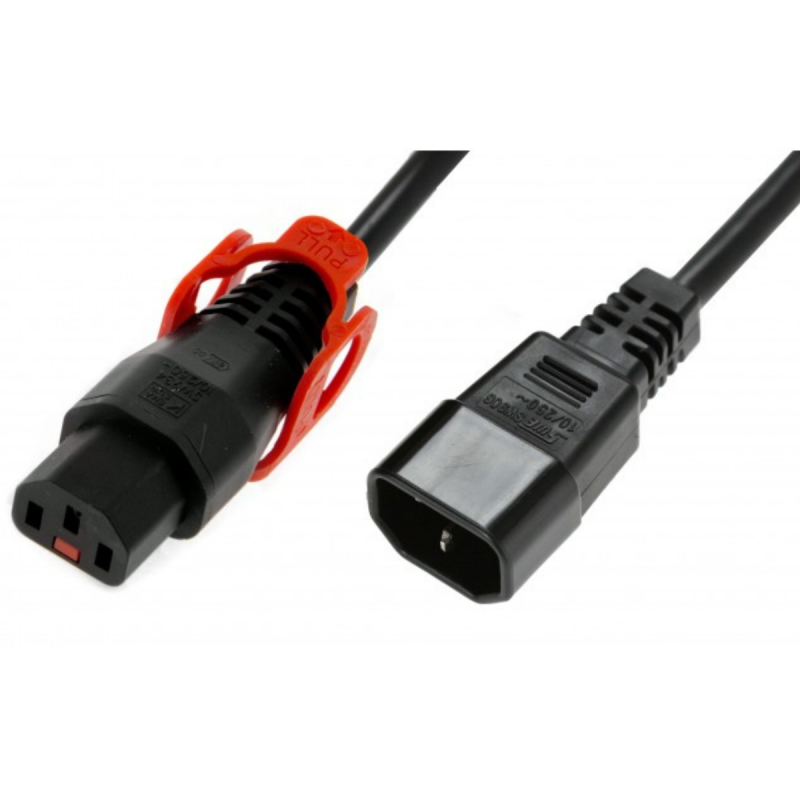 - 1 x Everlan IEC Lock Rallonge secteur C13/C14 avec cage sur C13 2m Noir