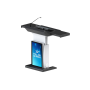 Le pupitre numérique multimédia Temas TK32H-M présente de multiples fonctionnalités. Un écran lecturier ajustable est situé sur le pupitre avec 2 tablettes coulissantes de chaque côté. Plusieurs connectiques ainsi qu'un microphone professionnel col de cygne accompagne ce pupitre. Parallèlement, l’écran 32’’ situé en façade vous permettra d’afficher des informations sur le présentateur : la présentation,'afficher un logo ou une publicité. Enfin, le TK32H-M est motorisé : vous pouvez donc l'ajuster très facilement à l'aide du bouton ou de la télécommande pour l'adapter à votre taille.
