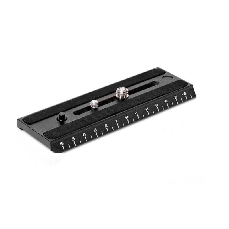 Plateau caméra coulissant avec règle métrique compatible avec les têtes vidéo fluides Manfrotto : MVH400AH, MVH502AH, MVH502A, 504HD, 509HD, MVHN8AH et MVHN12AH.